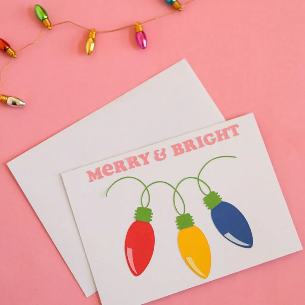 Celebrate the season with this fun Christmas lights card. Use your Cricut and cardstock to create this quick and easy handmade card.