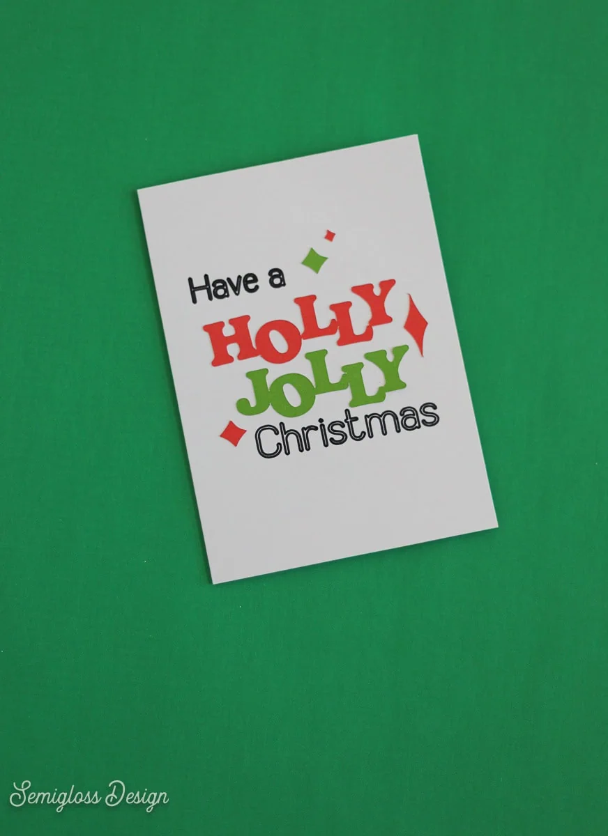 This Holly Jolly card features fun retro lettering, combined with the Cricut pen feature. Free SVG.