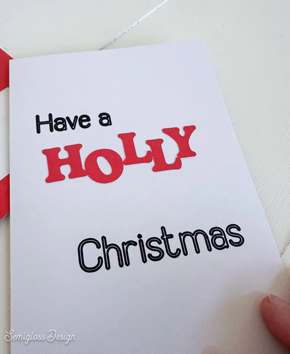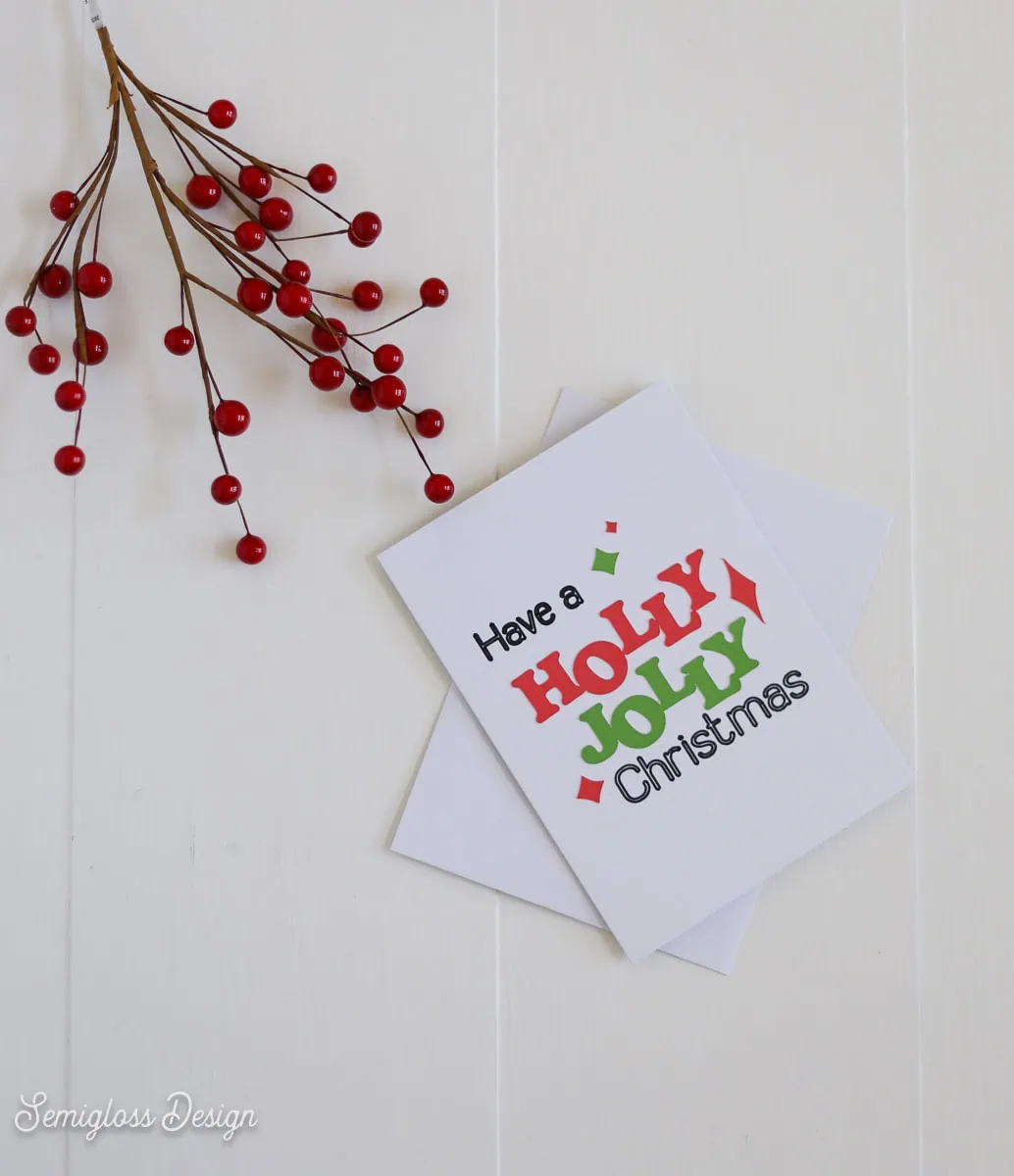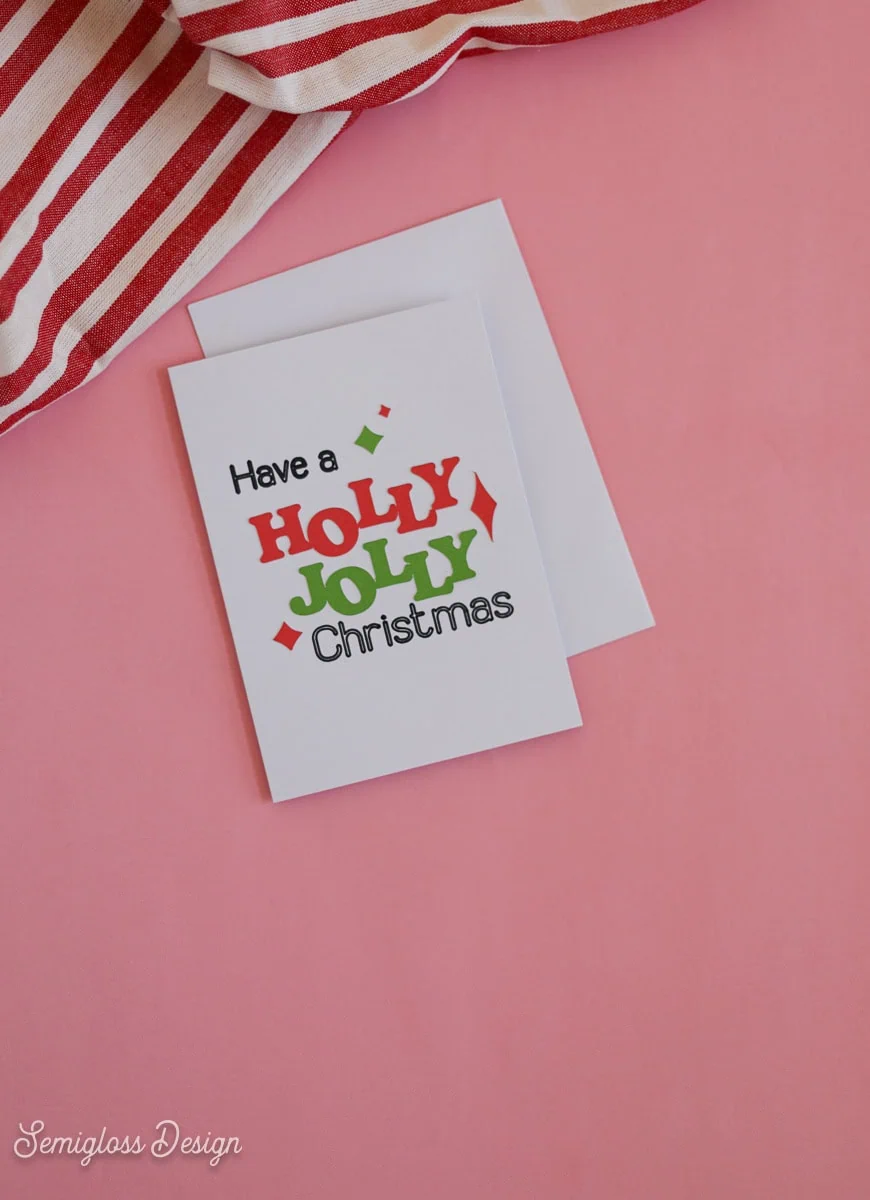 Please note: I designed this card outside of Cricut, so the pen text results in an outline. I like the effect, but if you want a simpler design, you can delete the “Have a” and “Christmas” text and retype them using a Cricut text that is designed for writing. You can filter by “free” if you want. I like the “Simple Celebrations” font.